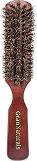 GranNaturals Mens Boar Bristle Hair Brush - 100% Natural Brown Wooden Club Style Brush for Men - Styling Beard Hairbrush for Fine Thin or Thick Hair
