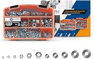 Muttern sortiment 911pcs - M3, M4, M5, M6, M8, M10 SechskantMuttern DIN934 mit Unterlegscheiben Whitworth 5/32, 3/16, 1/4, 5/16, 3/8 Muttern Set - Flache Scheibe Box, Sortiment Kit
