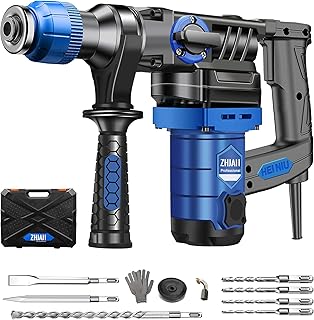 ZHJAN SDS-Plus Bohrhammer, 230 V 1130 W Abbruchhammer, SDS-Plus und Schnellspann-Bohrfutter, 800RPM,schwingungsgedämpfter Hauptgriff, Inklusive 7-teiligem Bohrer- und Meißel-Set
