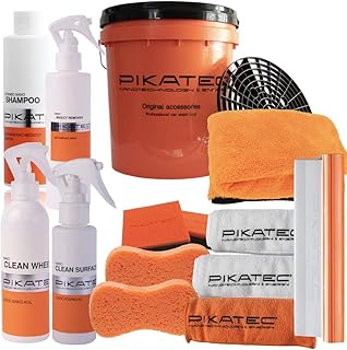 PIKATEC Auto Wascheimer Full | 15-Teiliges Set (Eimer, Schwämme, Mikrofasertücher, Autoshampoo, Trocknentuch, Insektenentferner, Felgenreiniger, Reiniger) | Waschset für Auto, Motorrad oder Boot