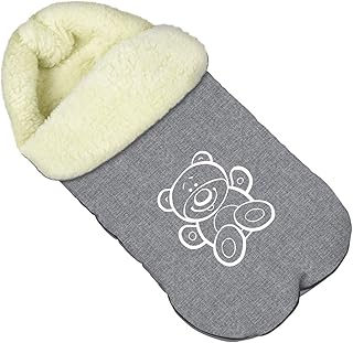 Baby Fußsack WinterFußsack für Kinderwagen Wolle Maße 85 cm für Buggy Mit Kaputze Teddybär Flachs [071]